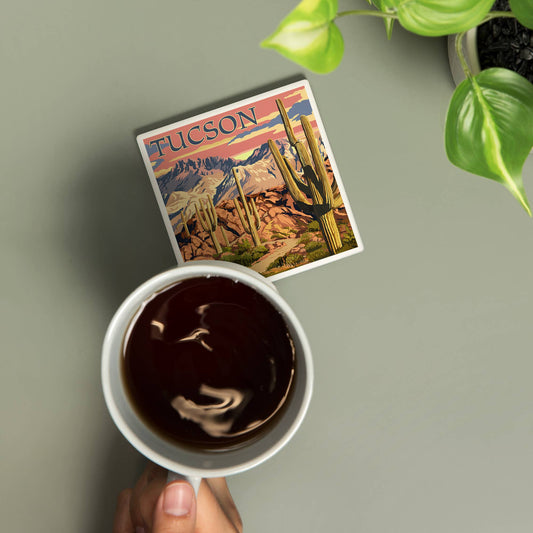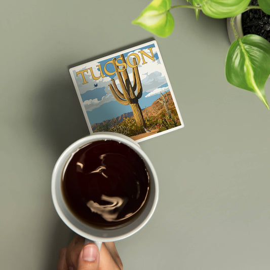CERAMIC COASTER Tucson, Arizona, Desert Cactus Trail