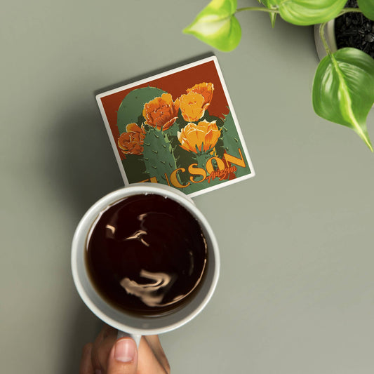 CERAMIC COASTER Tucson, Arizona, Prickly Pear Cactus
