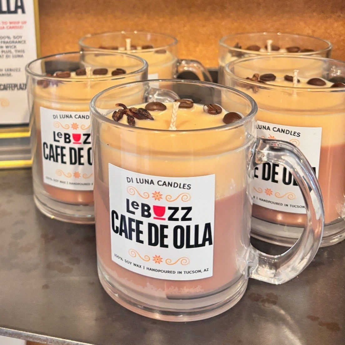We worked with a local restaurant and bakery. to create their own Cafe de Olla candle.