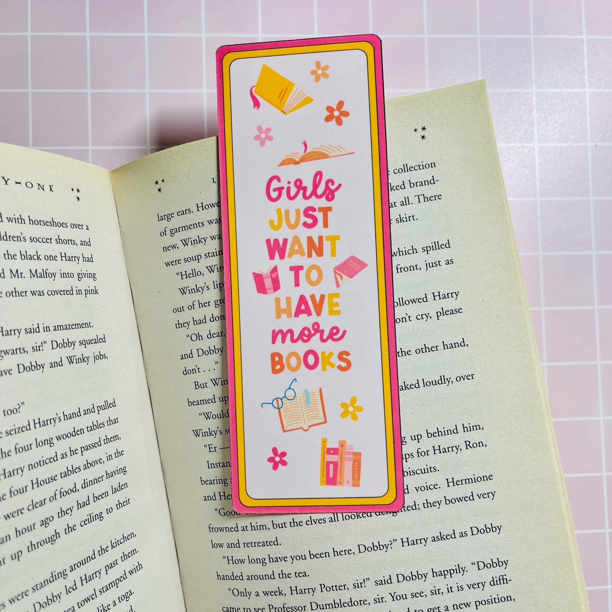 Laminated bookmark with rounded corners. Each bookmark is approximately 6"x2" and has a matching single colored back, image is on one side.