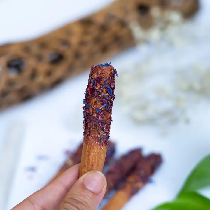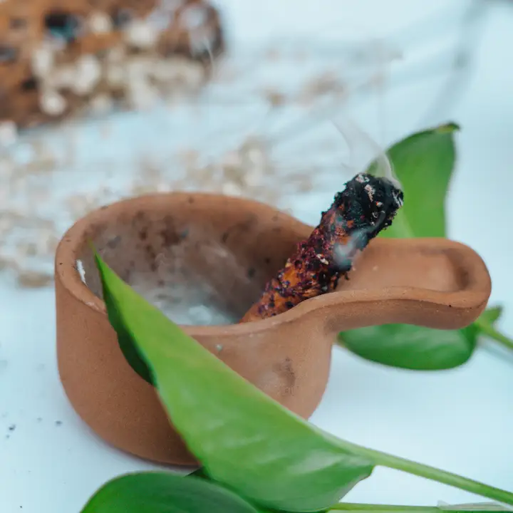 -How to use Canelitas: Take one canelita and angle it with herbs down, take your flame and let it burn until smoke comes up through the tunnel of the stick. Put out the flame and rest it on a heat resistant surface. Don't leave unattended.