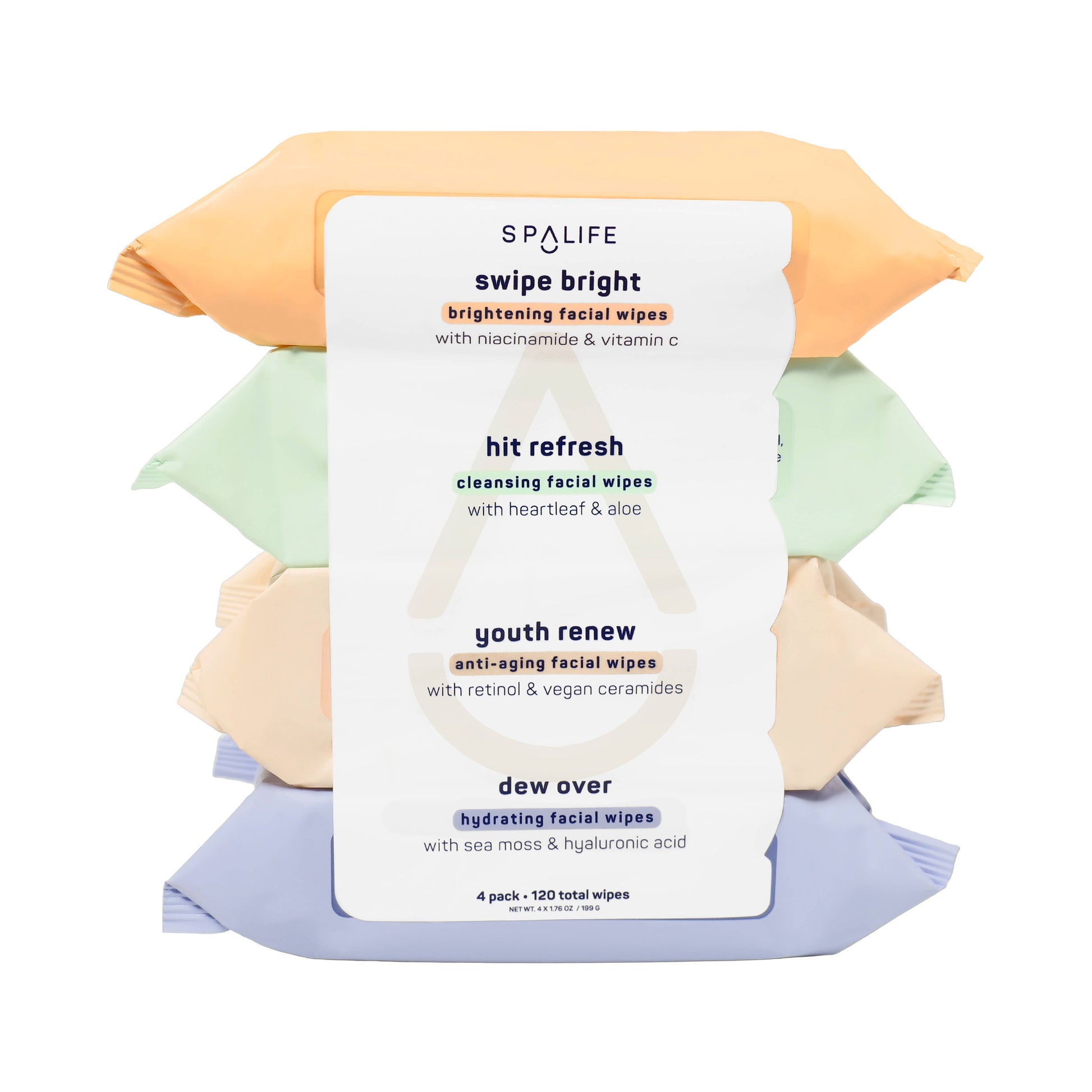 A facial wipes 4-Pack with each variety targeting a specific skin concern: anti-aging, cleansing, brightening, & hydrating.